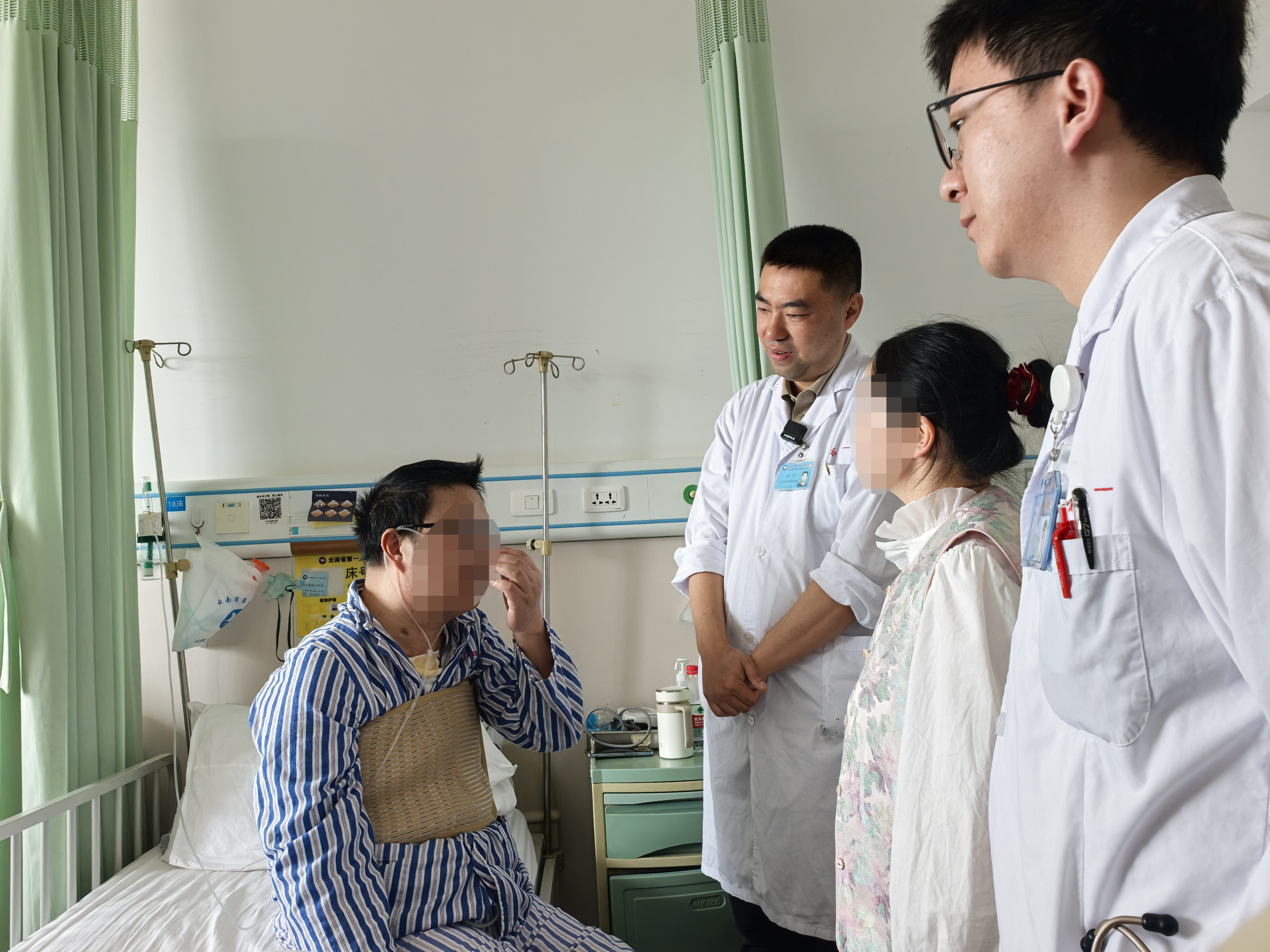 在省一院感染科,医护人员陪着敖先生闯第一关——“抗感染阻击战”。面对敖先生严重肺炎和呼吸衰竭问题,省一院感染科团队采用“靶向抗生素+免疫调节”方案,中西医结合科同步介入,以中药汤剂清热化痰,配合穴位敷贴增强体质。治疗第7天,敖先生肺部感染好转,具备手术条件。